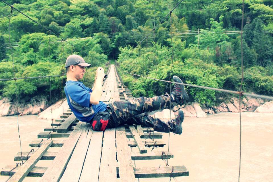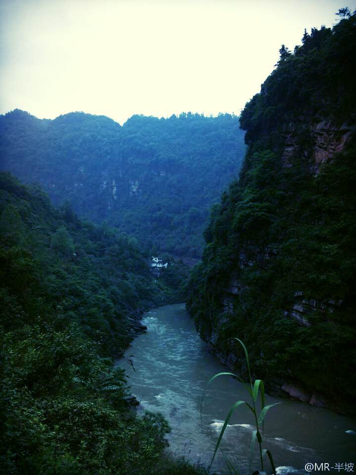 D2,雅安—新沟,90km,海拔1130,今天开始地形完全不一样了,悬崖峭壁,峡谷急流,还有爽到吐血的无尽的爬坡,无尽的坡啊!铁屁已练成功,住的客栈是很有风情的木屋,后面就是悬崖河流,感觉不错,洗洗衣服,上上网~