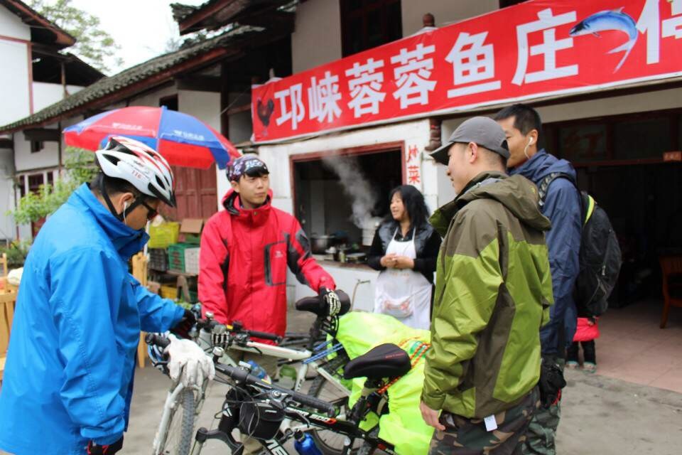 D1,成都—雅安,150km,第一天就半死了,后半路爬坡要命,客栈门口还有那么长坑爹的坡—东升竹庄太坑爹!瘫了!中午米饭大家吃了两盆!