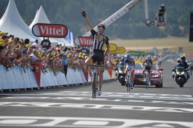 但是终点1.4km让法国内战成了法国灾难,Stephen Cummings从两人的右侧杀了出来,马上取得领先优势,Cummings加速向前跑且在下坡成功甩开Bardet与Pinot,最后率先进入终点,拿下历史性的胜利,这座单站冠军不仅是他车涯在环法的首胜,同时也是非洲车队在环法的第一胜。跑在后方的黄衫热门车手之间在Quintana点燃战火后,Froome在随后不久追上Quintana,并一路跟着他到终点前,最后再加速反超Quintana,比Quintana更早1秒进站,Valverde比Froome晚3秒进站,Contador则是较Froome晚19秒,损失最大的则是Tejay van Garderen,他比Froome晚40秒进入终点。