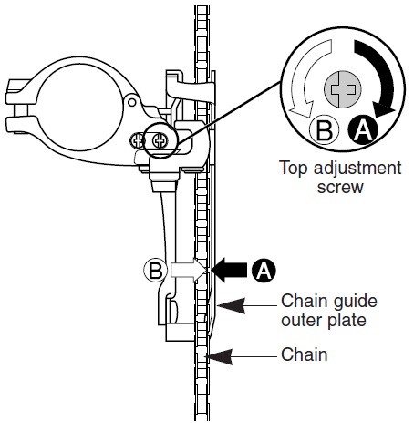 以SHIMANO的系统为例,前变上方多半是十字螺丝,故使用十字螺丝起子调整即可。该处螺丝若没有调整好,就容易出现链条往外或者往内跑的问题,在高速状态下行使,掉链可能会产生安全的疑虑。