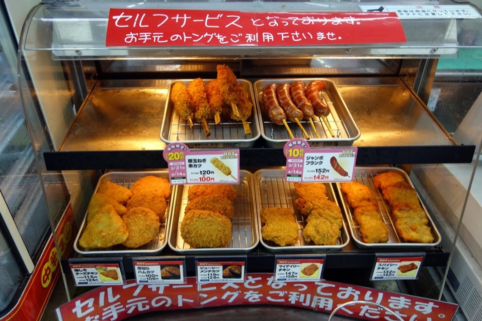 带着眼镜,而眼镜上一层的雨水+雾气,我看着这个开放式的熟食柜,还以为它有层玻璃,明明可以自己拿想吃的,确定店员来帮忙。