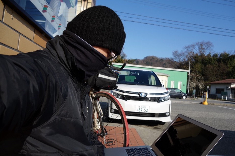 先把睡觉的装备搬往熟悉的厕所,接着再回头抬起上锁的单车(手指不听使唤,无法转密码锁)往厕所移动。
