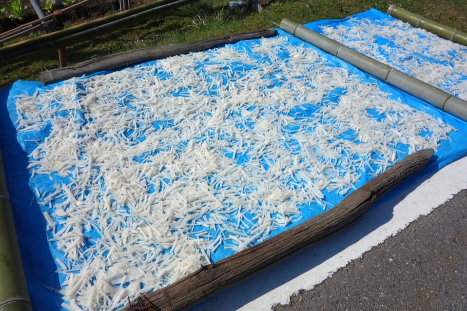 不知道在晒什么,萝蔔乾吗?