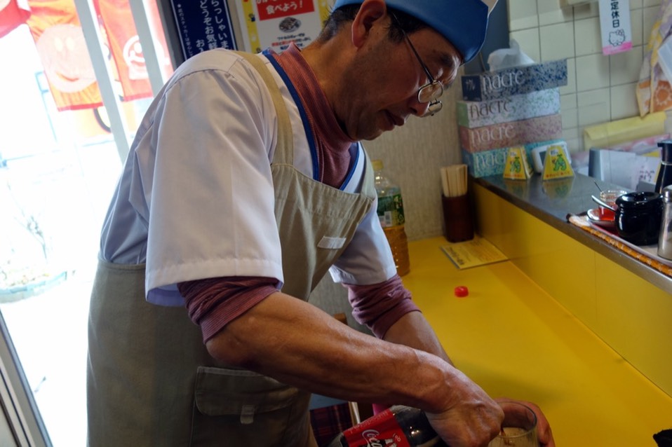 再回座位继续吃我的拉麵,此时饺子送上来了,就用饺子当比例尺吧。