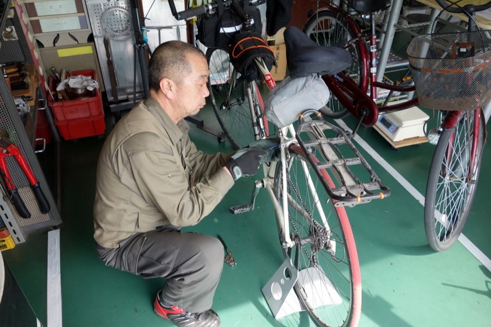 台湾很多单车店都很机歪,你要修车不能把车直接牵进店里,会被店员白眼,我不知道日本规矩怎么样,就把车停在外面。