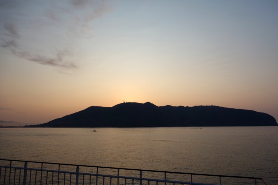 好像是说错过了日出没关係,现在还有机会让你重看一次海上的日出,加上船班延误的关係,此时还在海上,否则都已经靠岸了呢。
