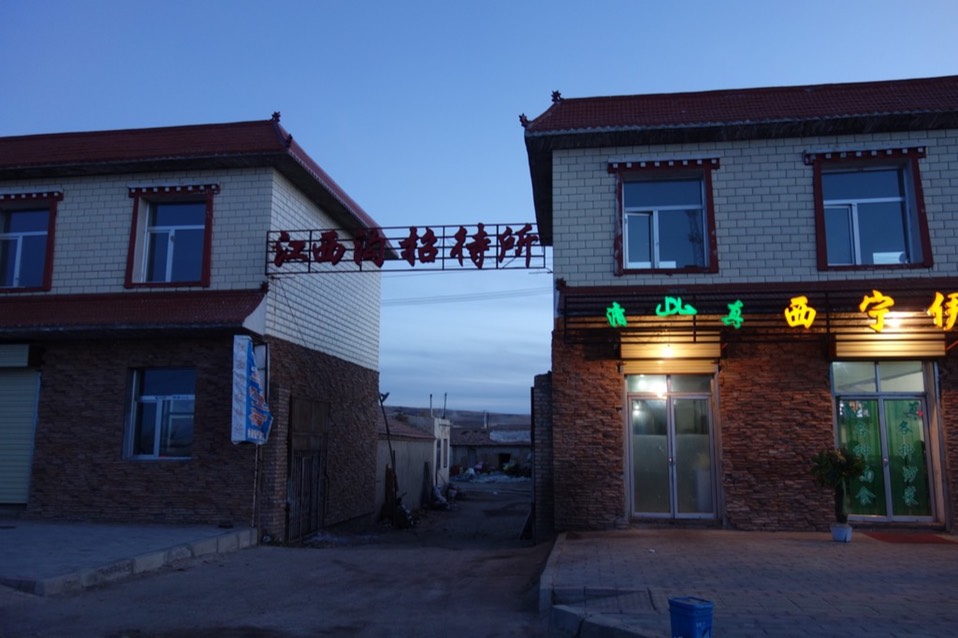 六点半多,在太阳最后的余光下进入了江西沟,一个发展中的小城市。