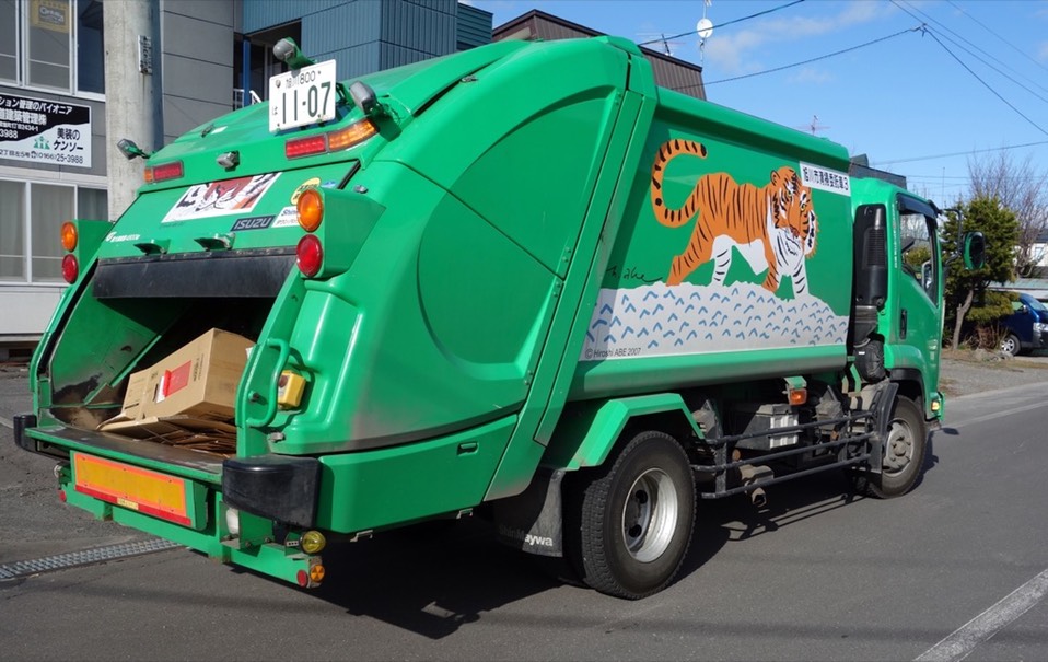 旭川另一个很有名的是动物园,连垃圾车都是动物园的图案,这辆是老虎,刚刚开过去一辆企鹅没拍到。