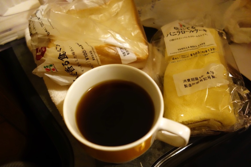 便利商店:吐司6片-108円,咖啡牛奶-149円,热狗-154円,海绵蛋糕-132円