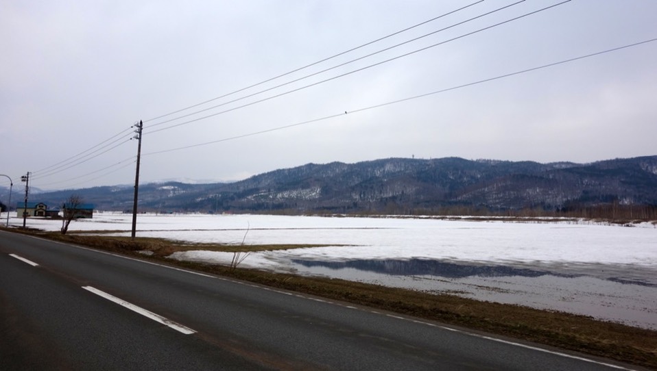 今天的景色还蛮简单的,就是田,或是什么都没有的田,雪从少变多,后来就变成雪山。
