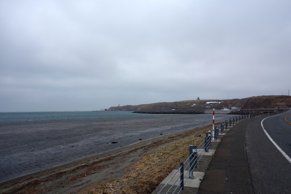 眼力够好的话,可以看到海湾那边有一个尖尖的东西,那就是宗谷岬的纪念碑,距离2公里。