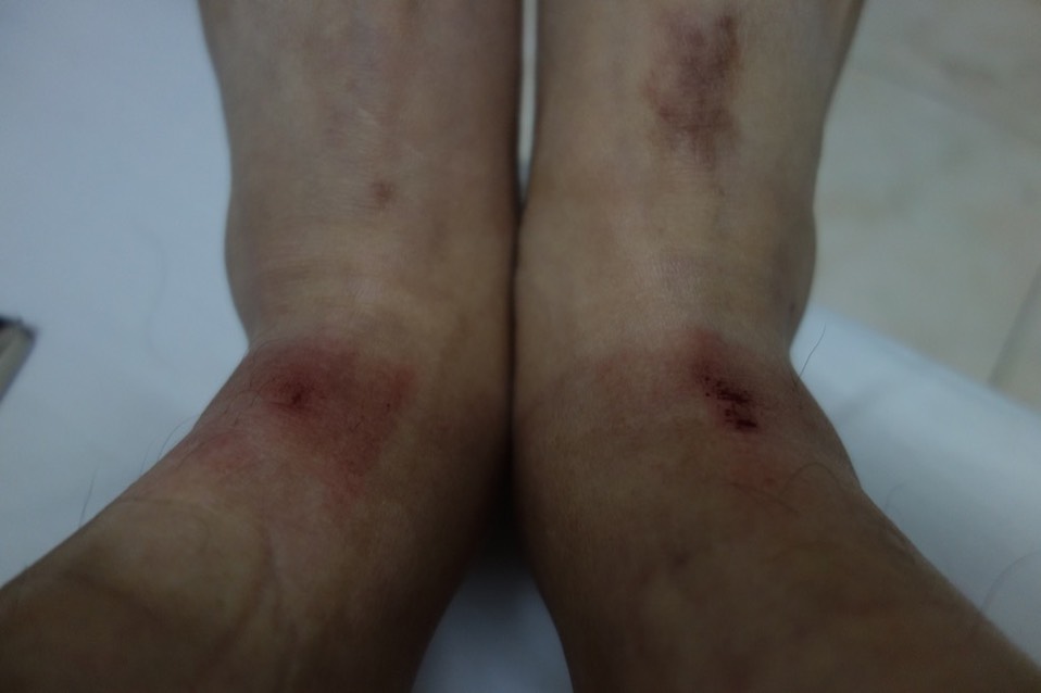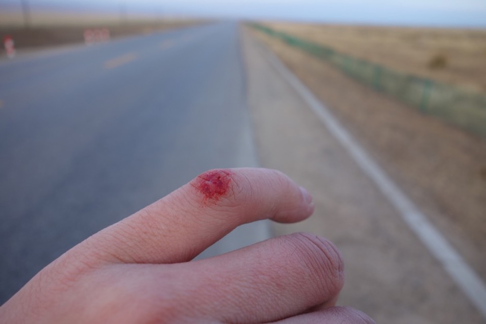 骑车时。全身会露出来的部份除了脸之外,只剩下脚踝,而这几天的骑乘已经把脚踝“摩”的很惨(我以为是摩擦的伤口,事实上是冻伤而不自知)