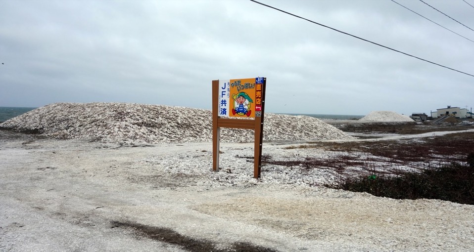 帆立贝的壳,堆积的小山。所以这边的名产就是这个?
