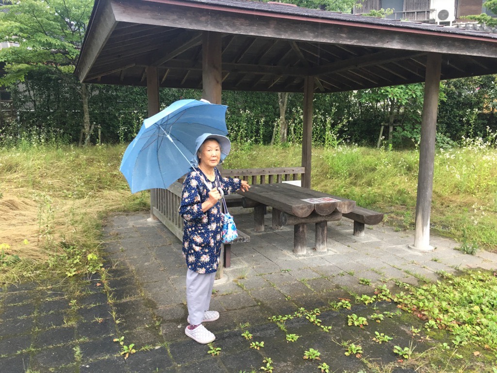 在外头躲雨时,有个老婆婆跟我聊天。「是一个人参拜吗?」