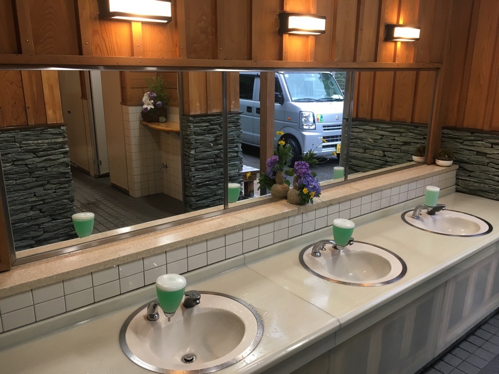 今天洗澡的地方,从温泉澡堂变成洗手台。