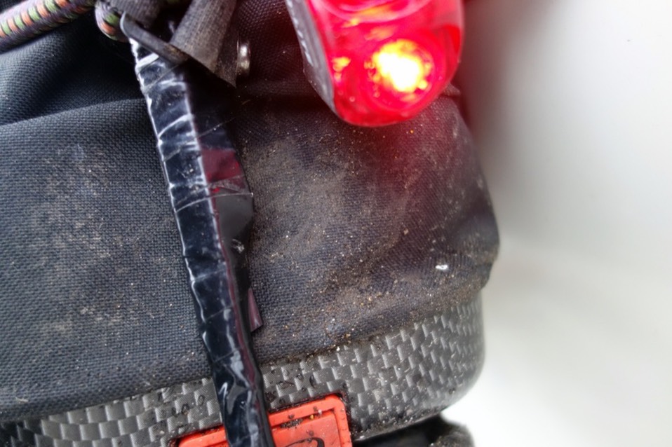 泥泞的后背包,这还是已经清理过的状态。幸亏里面是两层的设计,还号称保温,所以应该防水性还可以?