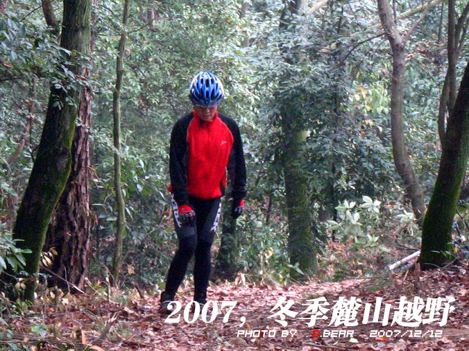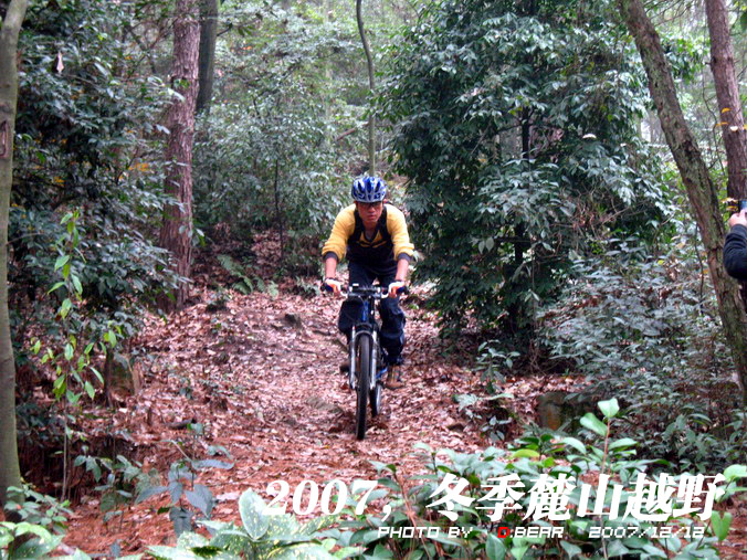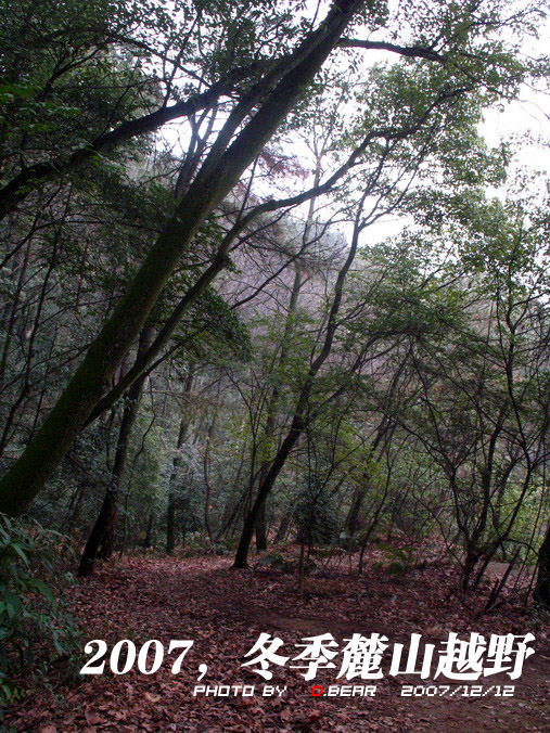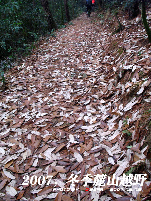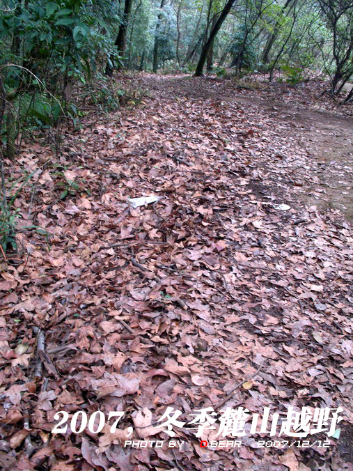过了一桥,很快来到师大,因为久未骑上山,不太记得路了,只是凭印象从二里半开始右转,然后慢慢寻找上山的路。沿着左边的路上去,看到一个小径,骑了上去,饶过一个废弃的房子,慢慢开始环山越野了。开始这一段路不是很陡,路况也不错,我甚至怀疑是不是走错了路,因为我记得以前的路有一段是很难骑的。过不了多久,饶了一个弯,才发现其实环山越野才刚刚开始,只到了以前逃票从湖大上来的地方。过了这些众多台阶的地方,来到一个亭子,好象是“忠烈亭”,喝了水休息了一下,开始印象中的越野了。越野的感觉很好,特别是在这个秋日,在这个岳麓山的秋日里。树叶黄了,有的挂在树梢,有的在风中飞舞,也有不少已经铺在了山路上,任凭车轮压过。虽然今日天气状况不是太好,不过林间还是不时会遇到一些路人,有在读英语的学生,有在山上打泉水的老人,也有不少游人,感觉很好。路也越来越险,特别是有几个上下坡确实很陡,不过只要慢慢来,掌握好节奏,控制好速度,都可以平安通过的,实在是没把握的地方,当然也要乖乖下车推过去了。