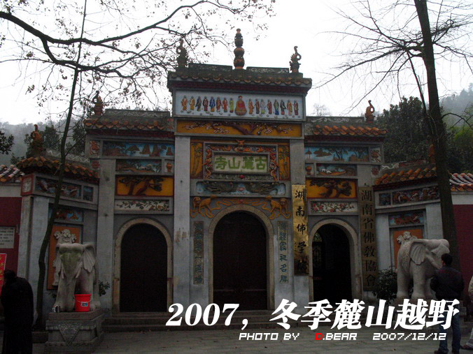 又上了几个坡拐过了几道弯,来到一座熟悉的桥,这个地方景色不错,桥下面是一个山涧,上头有几孔泉眼,不少人都站在那上面,静静等候山泉水把瓶子灌满。站在桥上,置身在岳麓山的怀抱中,周围尽是红色的黄色的紫色的绿色的树叶,五彩斑斓甚是漂亮。此时天气越来越阴了,不时滴下一些雨滴,休息了一下,抓紧时间又继续开路了。之后的路比较好骑,一会儿就看到很多游人了,右拐,就到了麓山寺。在那里又休息了一下喝了水,开始爬山了。