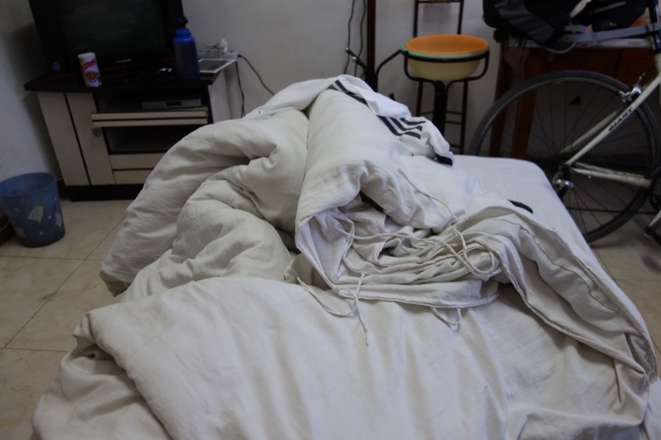 盖两条棉被睡觉,很重但很温暖。离开旅馆前一如往常都会把房间整理的和刚入住时一样。