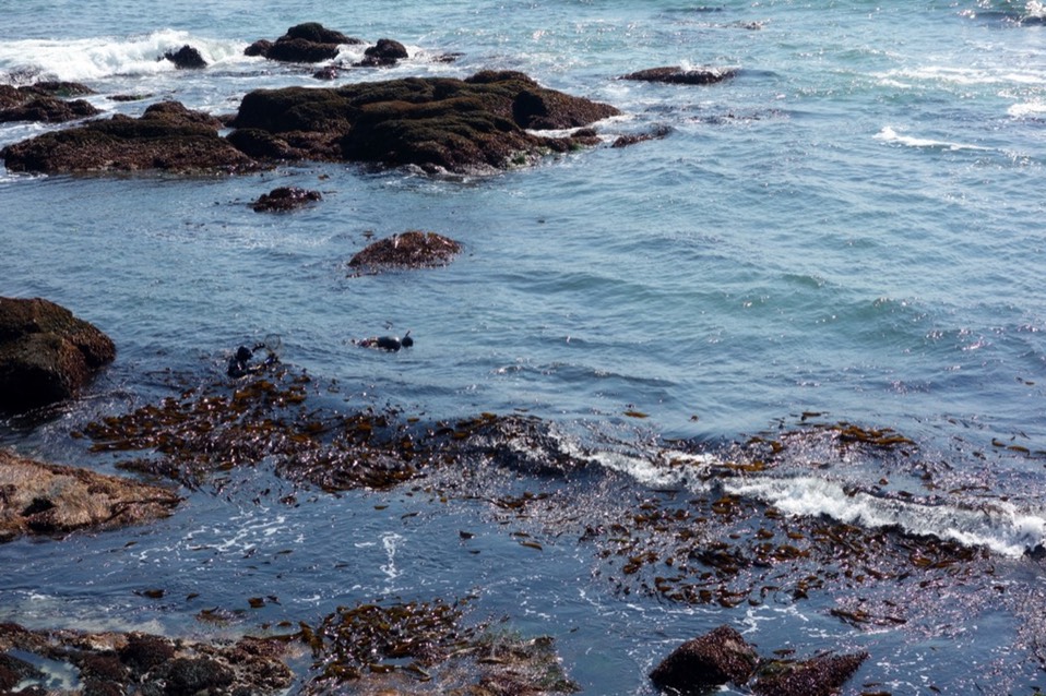 这地点真的全部都是昆布呀~根本是昆布之海,捞昆布的人穿着黑色的潜水衣在工作,不知道昆布要怎么挑好还是不好?