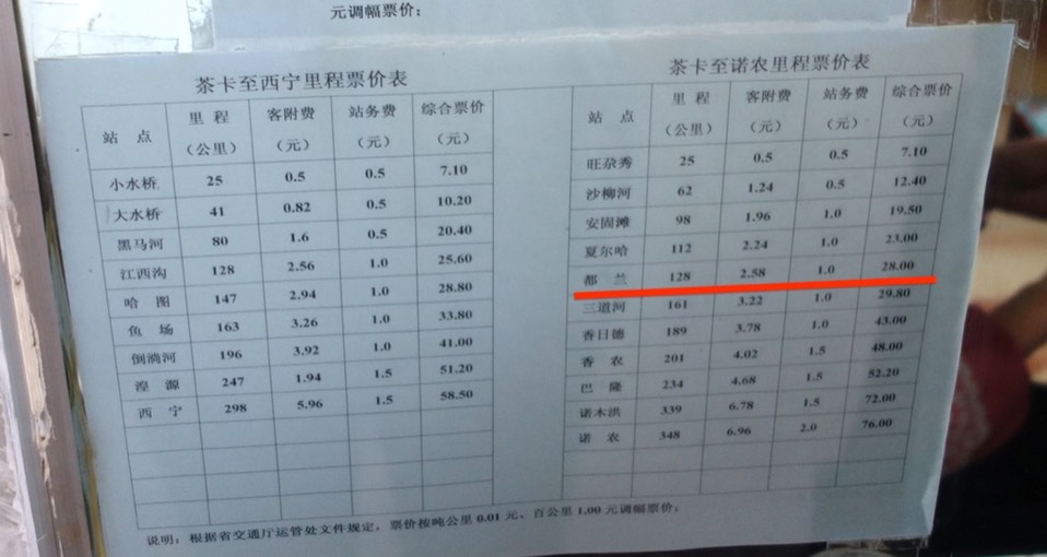 “那会经过格尔木吗?”(其实是个废话问题,往西藏一定会经过格尔木,但往都兰跟往格尔木是不同的价钱,所以我想提出来)