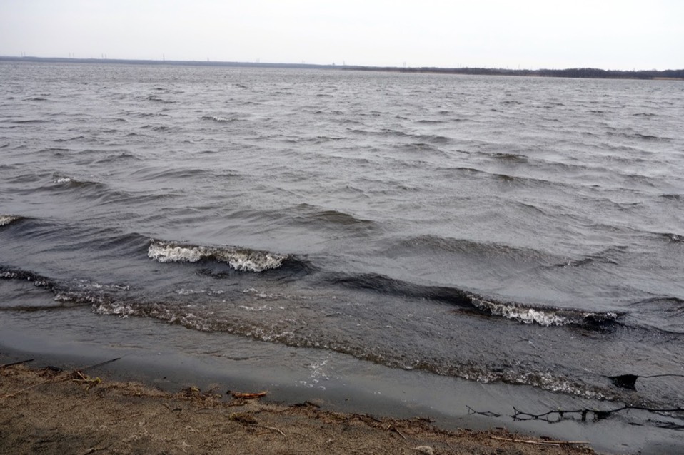 风非常的大,吹的湖面波涛汹涌,吹的岸上的人们个个抓紧衣领,喊着好冷~好冷~