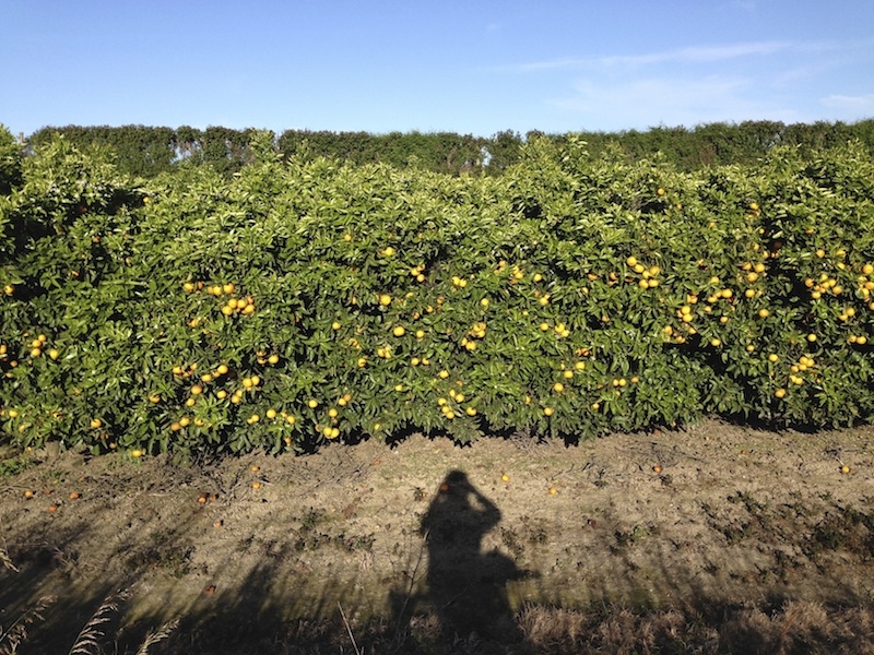 来不及摘的橙子,都掉地下了