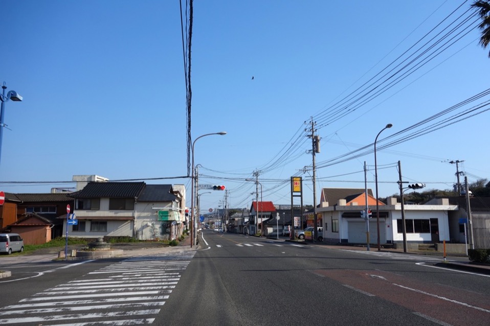 进入第一个遇到的市镇,昨天睡的是阿久根休息站,这里应该就是阿久根。
