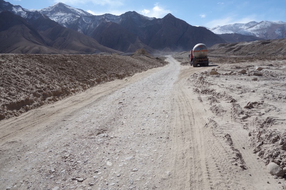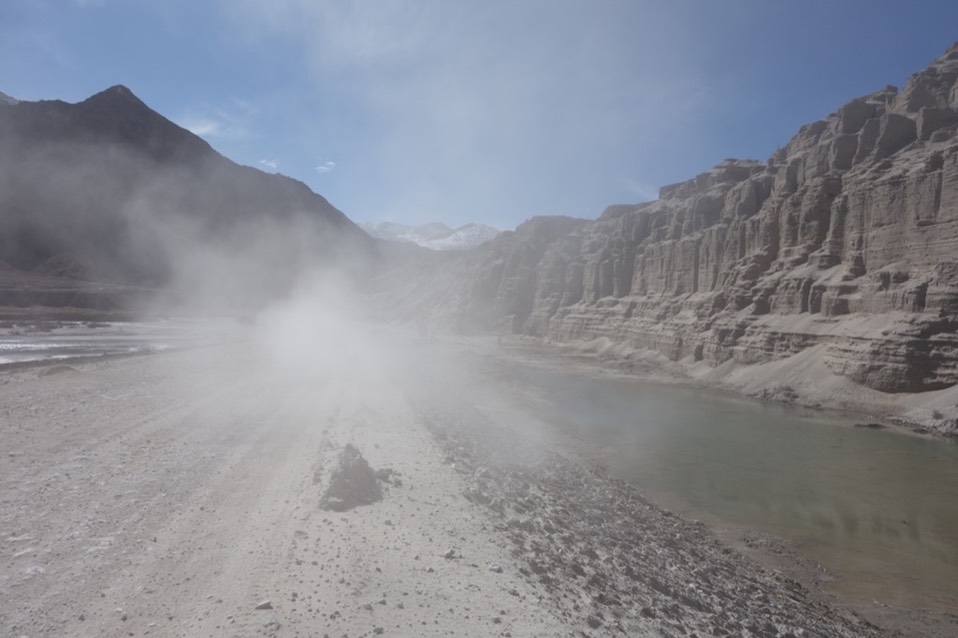 在烂路上或骑或牵的缓慢前进,想说什么时候才会走完这一段施工的路面,不时的还要被大卡车经过所扬起的沙尘洗礼一下。
