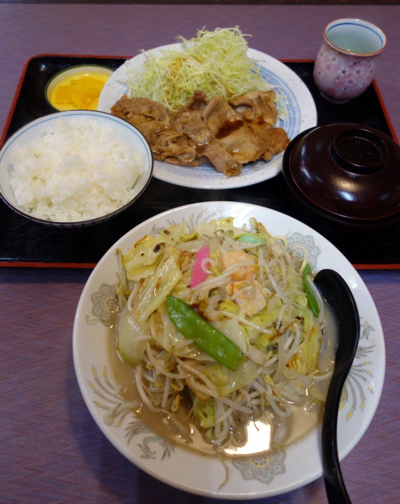 晚餐:炒什锦拉麵-700円,猪肉生姜定食-870円,黑轮X2-260円