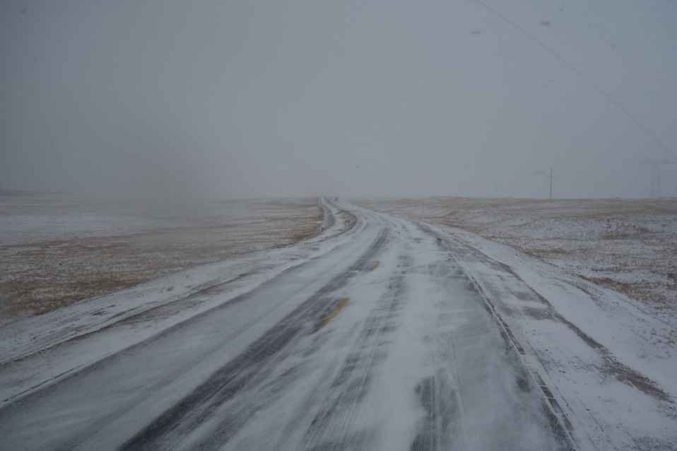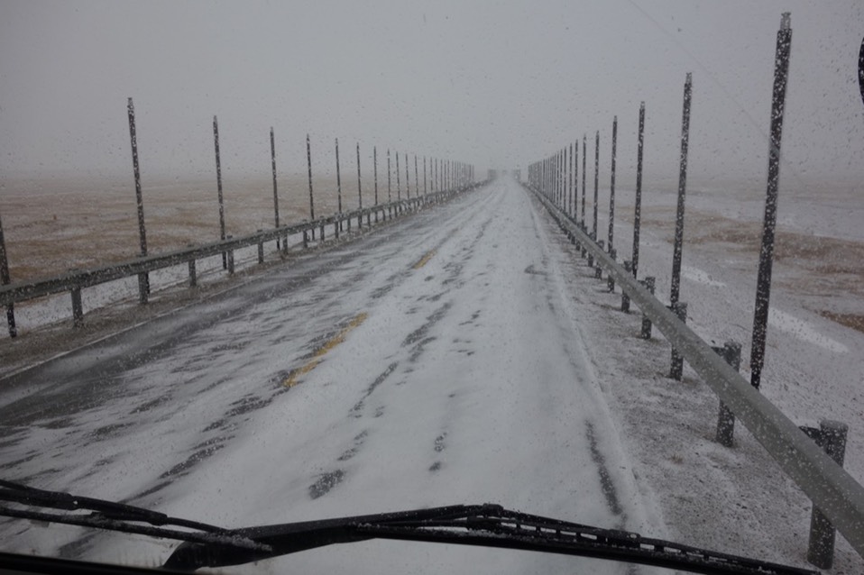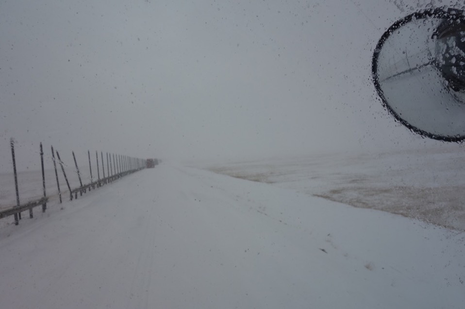 上车后真的被眼前的风雪给吓傻了,一开始还好,就是路面上的积雪越来越多。