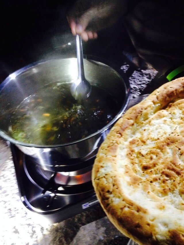 露宿沙漠,紫菜汤泡馕。第一天行程结束