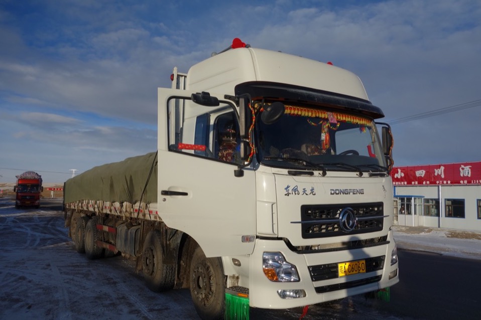 天黑并不会阻止卡车往拉萨前进,哥哥会一路开车到晚上约11点,然后换弟弟接手开车。