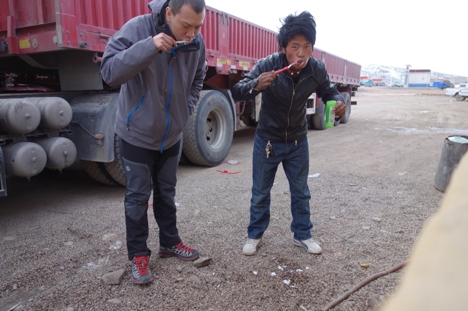 因为没有过夜休息的时候(一直重複),所以在餐厅吃饭就是刷牙洗脸的时间点,我也加入刷牙的行列。