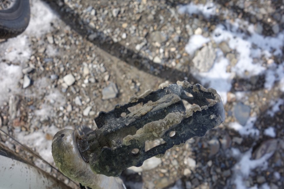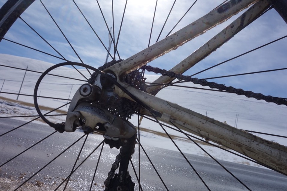 除了前后轮相继因为冰做的煞车而卡死,齿轮结冰,终于连后变速系统也报销了。