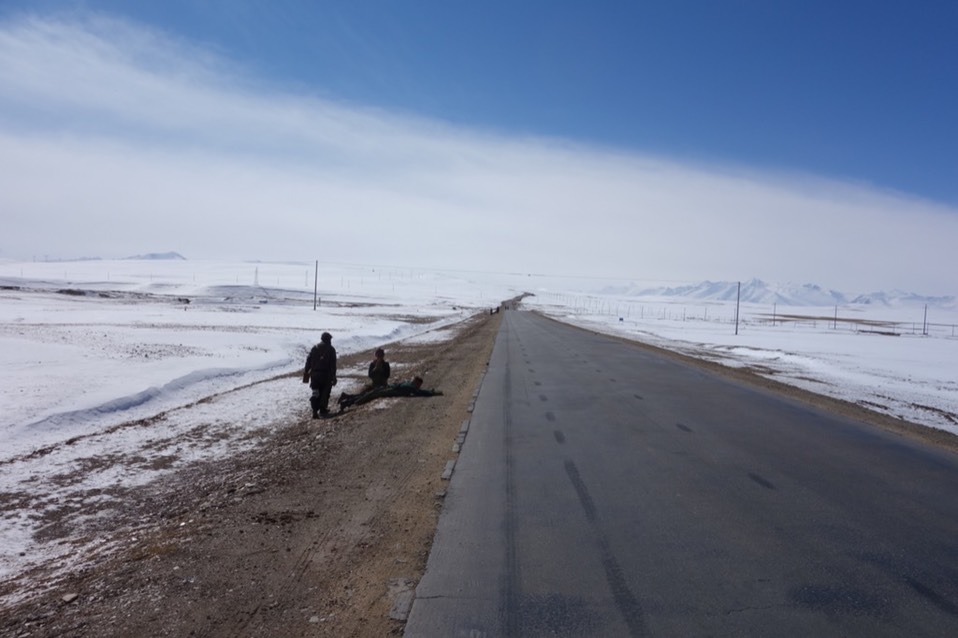所以他们会记录着这次跪拜到第几公里处(有路标),明年接着从这边继续往前走,后年再接着走,大后年再...直到走到拉萨为止。