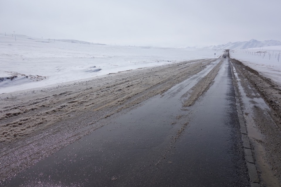 来往的车辆会飞溅出水和碎冰