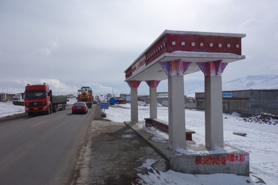 我在路边的侯车站等了五分钟的车,想搭上往当雄甚至拉萨的便车。