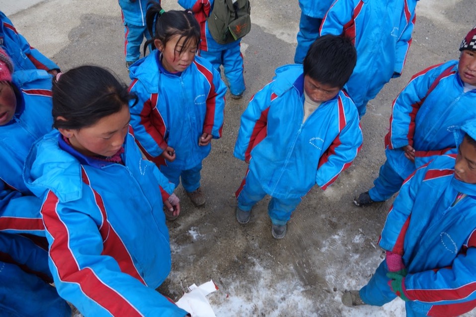 就在这边把巧克力全数分光光~藏民的小朋友很有礼貌,不会抢着跟我要,我还得一个一个的拿给他们,他们才会收下。