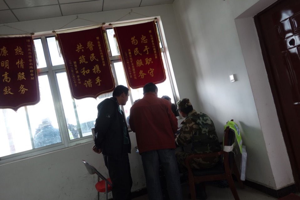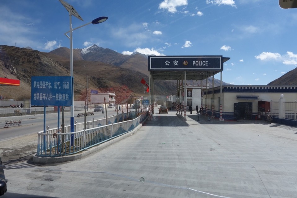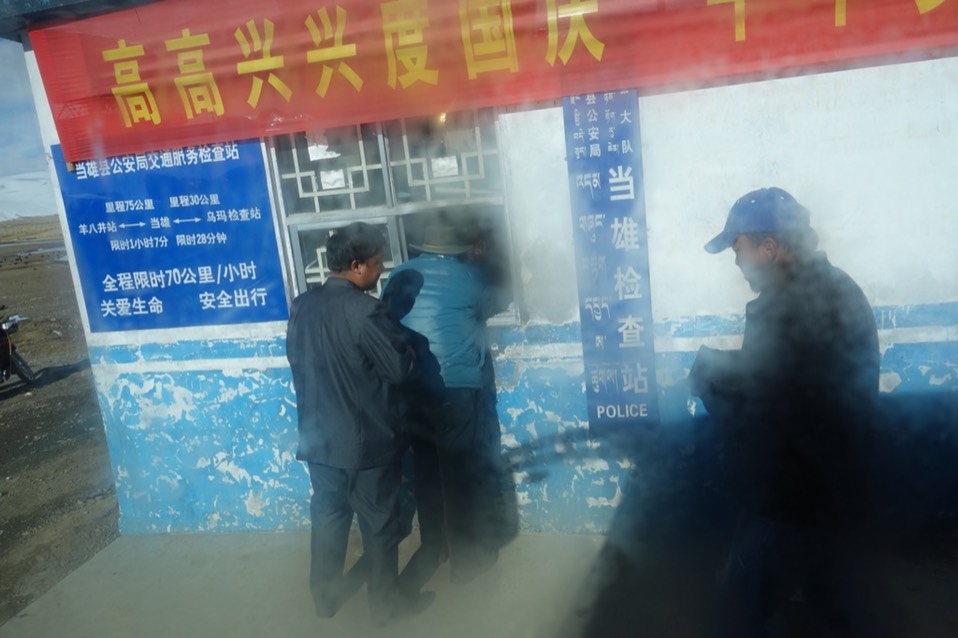 按耐着自己别又半路想要跳下巴士骑车的念头,有个东西可以让我很分神,就是一路上很多(真的很多)公安检查站。