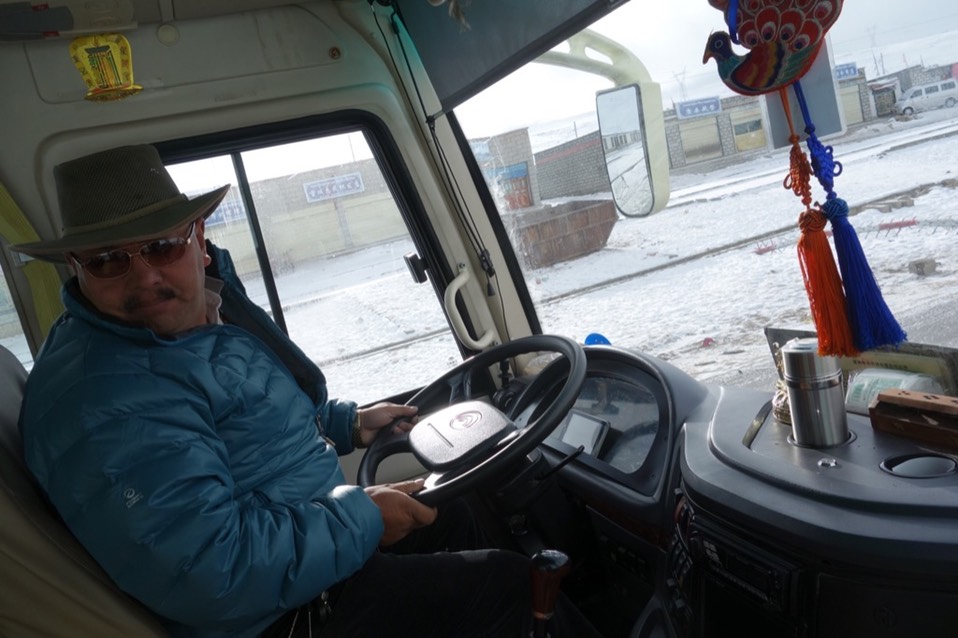 附带一提,司机是藏人。这个像是西部帽的打扮,也是常见的藏人行头之一。