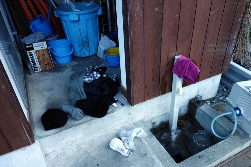 靠手电筒照明很够亮,找东西的时候常常会闪到自己的眼睛,洗了不少衣服,用弹力绳拉出一条晒衣绳来晾乾。