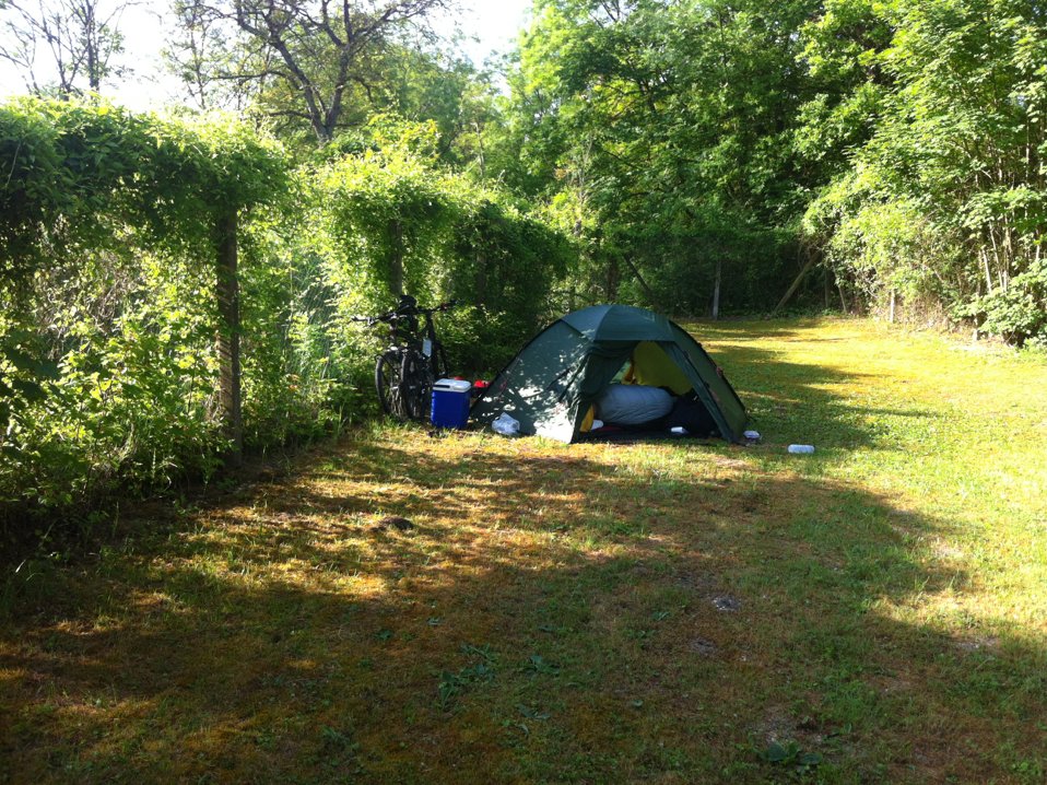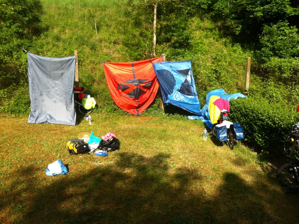 枕着河水声睡了一晚,起来发现帐篷角落一滩积水,水汽太重了。