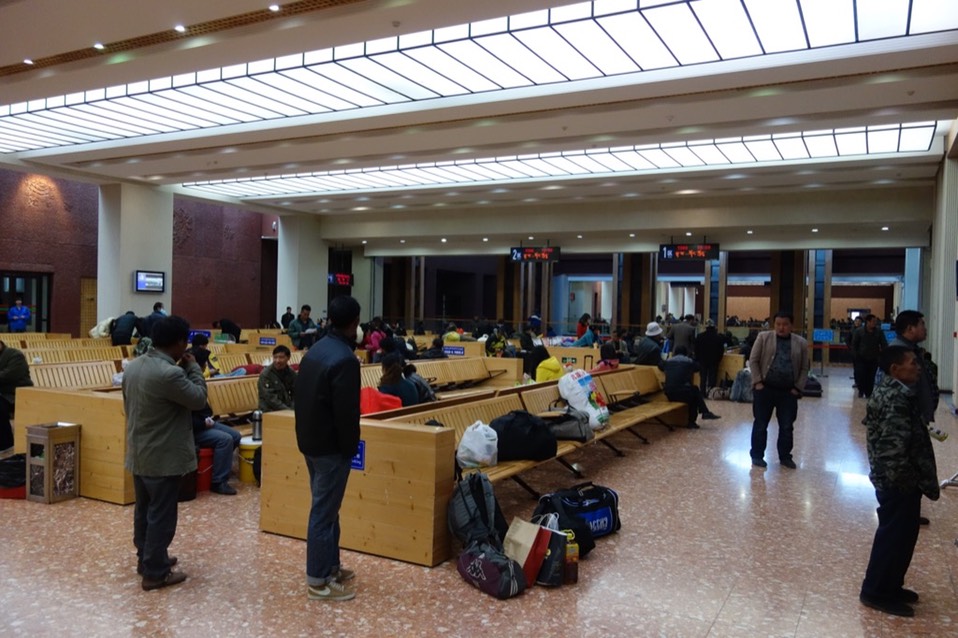 检查的关卡设置了更多的人力,通过安检后终于能进到车站大厅。(昨天只在旁边的售票处而已)