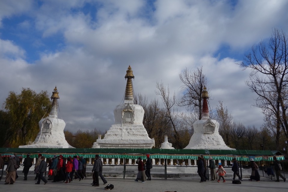 这三个尖尖是某个也很有名的不知道什么...周围也有一圈转经可以转,绕行这个一圈比绕行布达拉宫要容易得多。