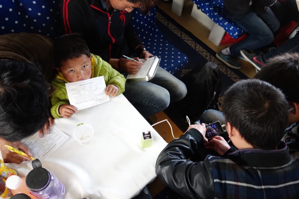 大家很努力的在写刚才那张健康表格,连小孩都要写。