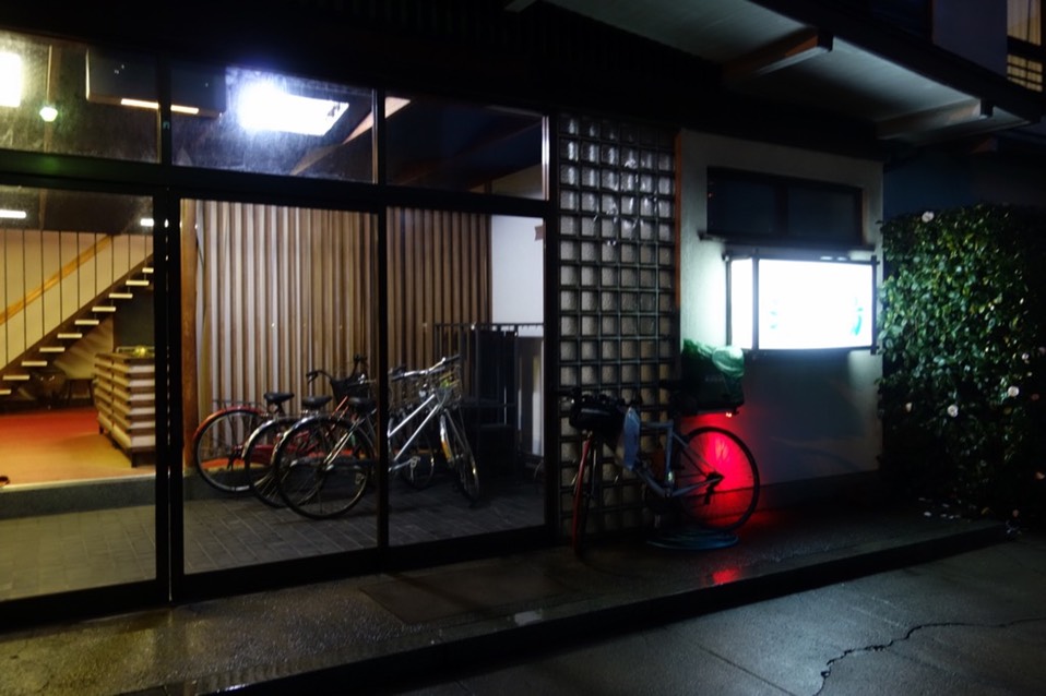六点半骑到晚上的落脚处「泽之汤」,雨天天黑的超快的,根本还不到日落时间就已经开始摸黑,很吃亏。