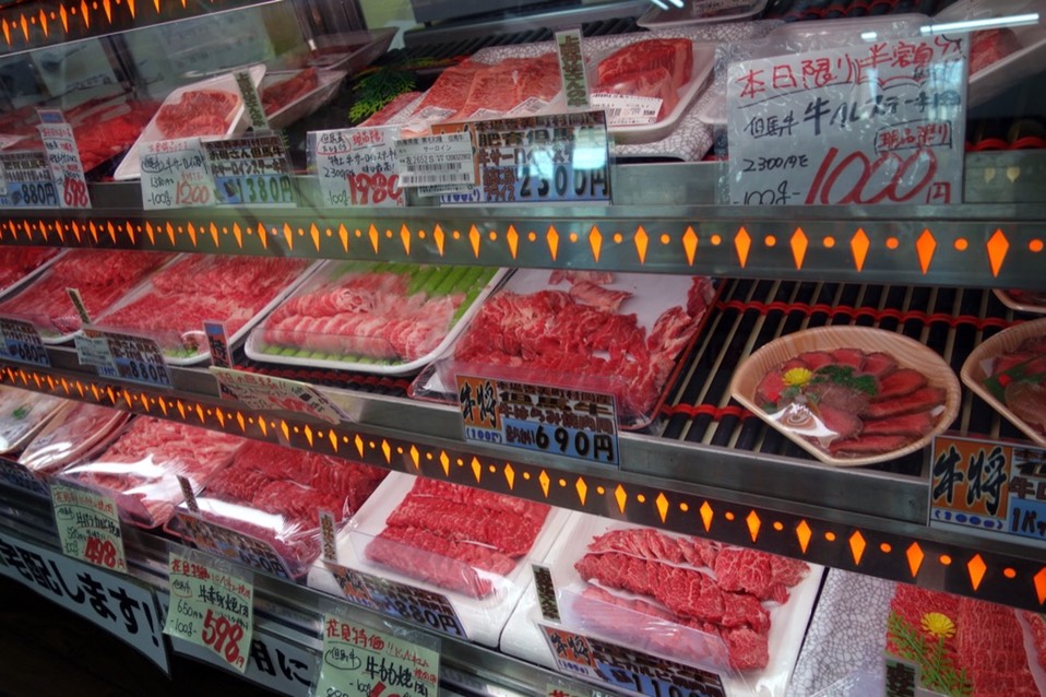 我想吃吃看但马牛厉害在哪里呀~~进入城市之后,沿路都是使用但马牛的餐厅,牛排尤其多。