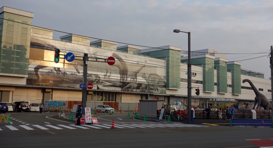 福井正在举办恐龙展,车站前放了很多恐龙(会动,会发出叫声),感觉整体还没布置完毕,处处都是施工中的篱笆。