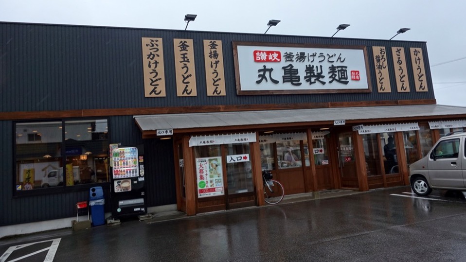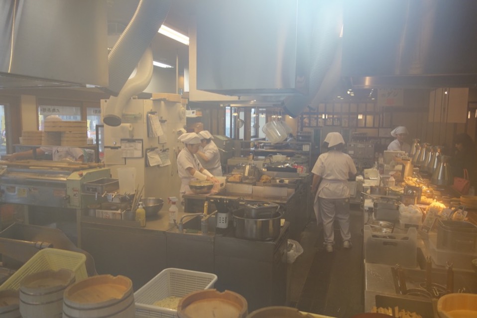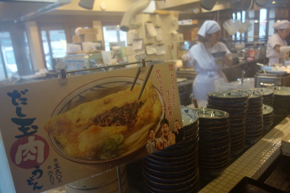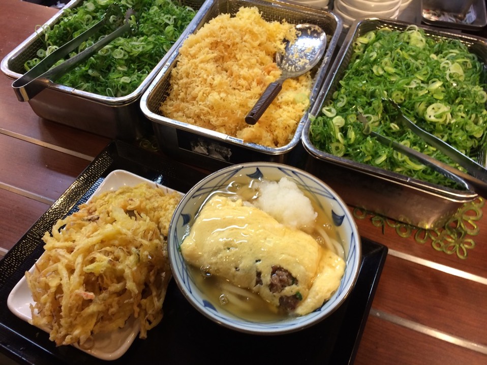 起雾还硬要拍,午餐吃这个,有蛋有肉的乌龙麵,店员问麵要正常还是加大,顺口回答加大,在点餐区还夹了两块天妇罗配菜。